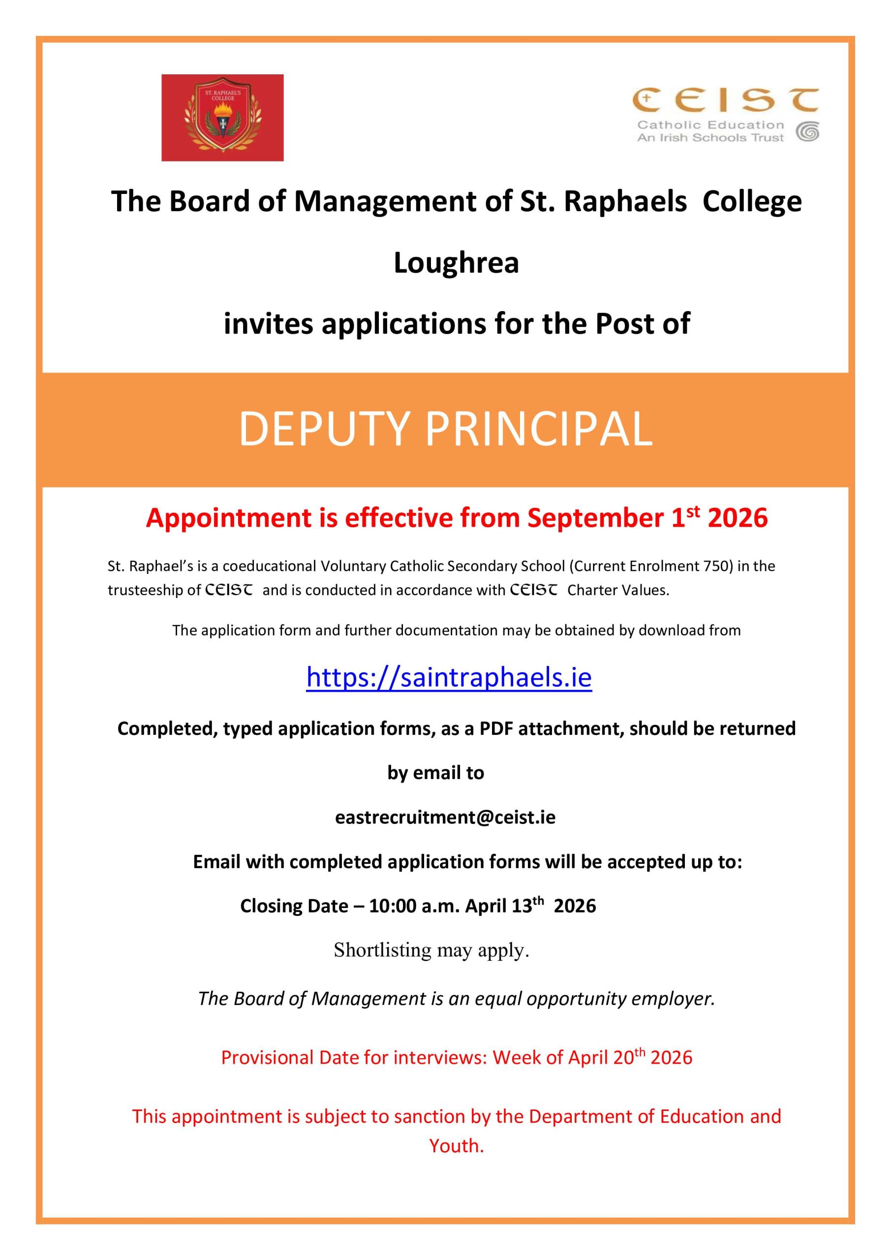 The Role of Deputy Principal in St. Raphaels College Loughrea, Co. Galway