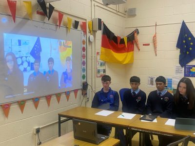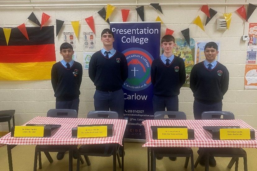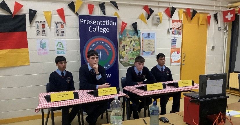 The project was organised by the Goethe Institut in London and initially students worked through various modules on environmental issues using the GIImagine platform. Each team then had to research an environmental issue relevant to their school setting. The Presentation College team was lead by Páidí Breen and the team members were Zahin, Rose, Martin and Abyan. The final stage of the competition was an online Zoom Press Conference on Friday 23rd january 2026. Presentation College spoke about our school Re-Turn system – see: Die Grünen Flaschen.pdf and answered questions in German from the other schools in our group. Presentation College, Carlow had excellent feedback and are now awaiting the results following all of the other Press Conferences.